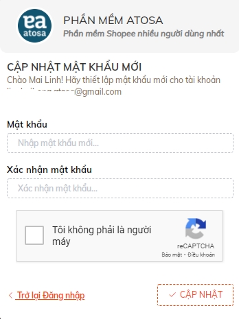Sốp hãy đặt lại mật khẩu mới và click " Tôi không phải người máy" để hệ thống cập nhật mật khẩu cho nhé