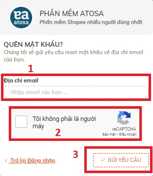 Bước 1: Click " Bạn quên mật khẩu? " trên màn hình đăng nhập của Atosa