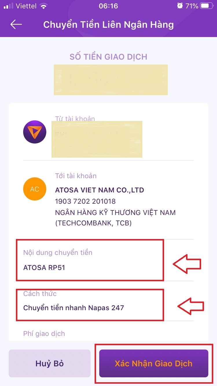 19037202201018 - Ngân hàng Teckcombank chi nhánh Hà Tây (chủ tài khoản: Công ty ATOSA).