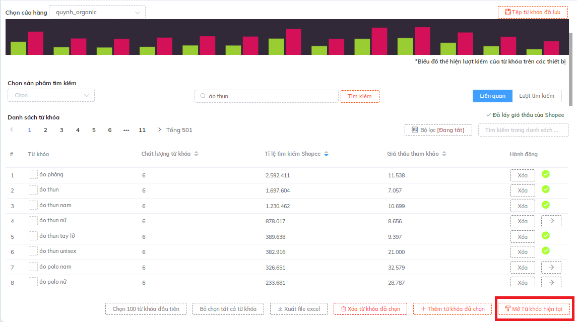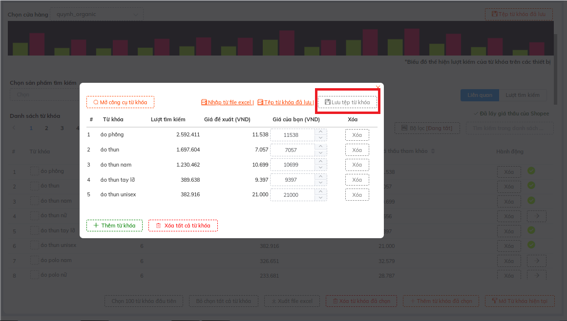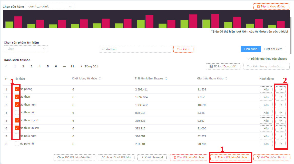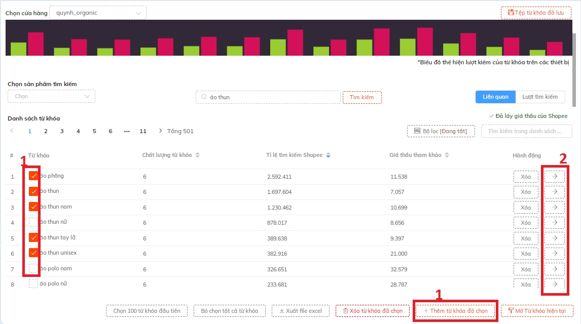 Bước 1: Lựa chọn các từ khóa, sau đó nhấn " Thêm từ khóa đã chọn ".