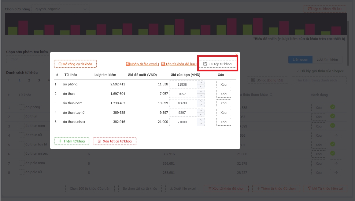 Sốp tham khảo thêm cách quản lý và sử dụng tệp từ khóa đã lưu TẠI ĐÂY.