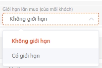Không giới hạn số lượng hoặc có giới hạn. Nếu shop chọn "có giới hạn", điền số lượng giới hạn cụ thể của sản phẩm.
