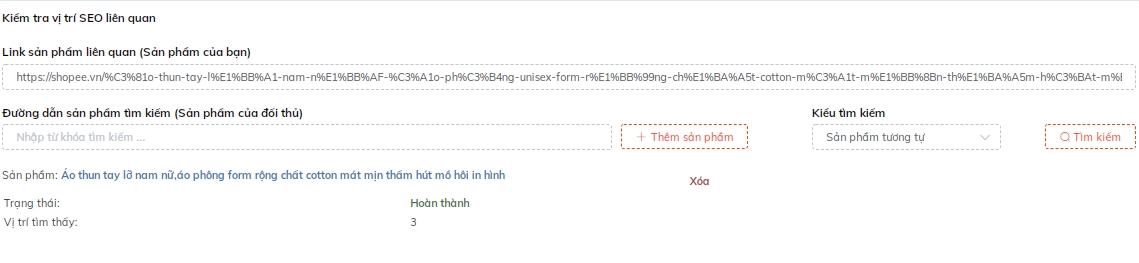 Bước 3: Nhập link sản phẩm tìm kiếm (là sản phẩm của đối thủ)