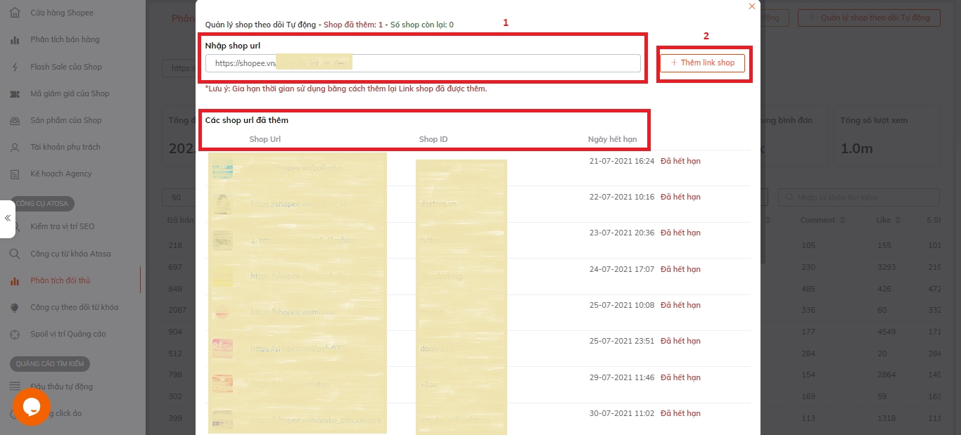 Thêm shop để quản lý theo dõi phân tích đối thủ tự động