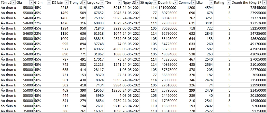 Qua bảng báo cáo đã tính toán trong phần 1, ta chọn "lọc" để tìm sản phẩm Hero