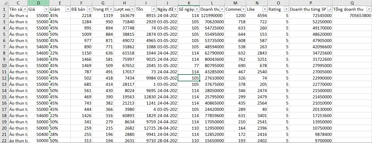 Vậy tổng doanh thu của shop từ đầu tháng là: 705.653.800