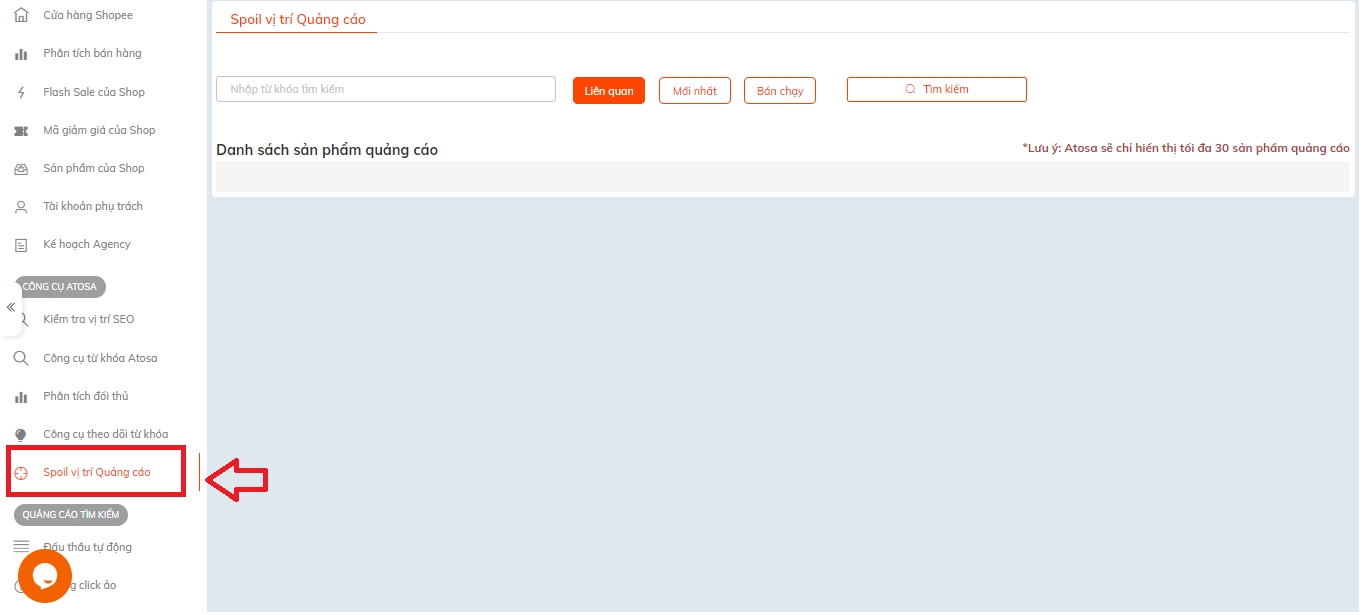 I. Hướng dẫn sử dụng Spoil vị trí quảng cáo Atosa