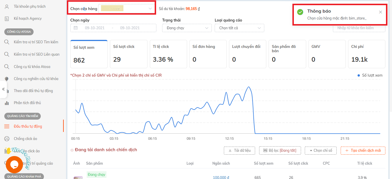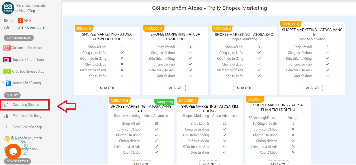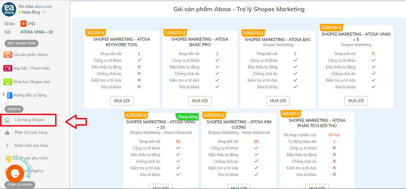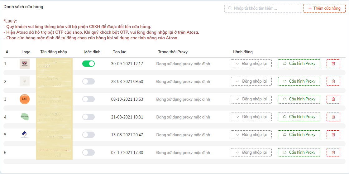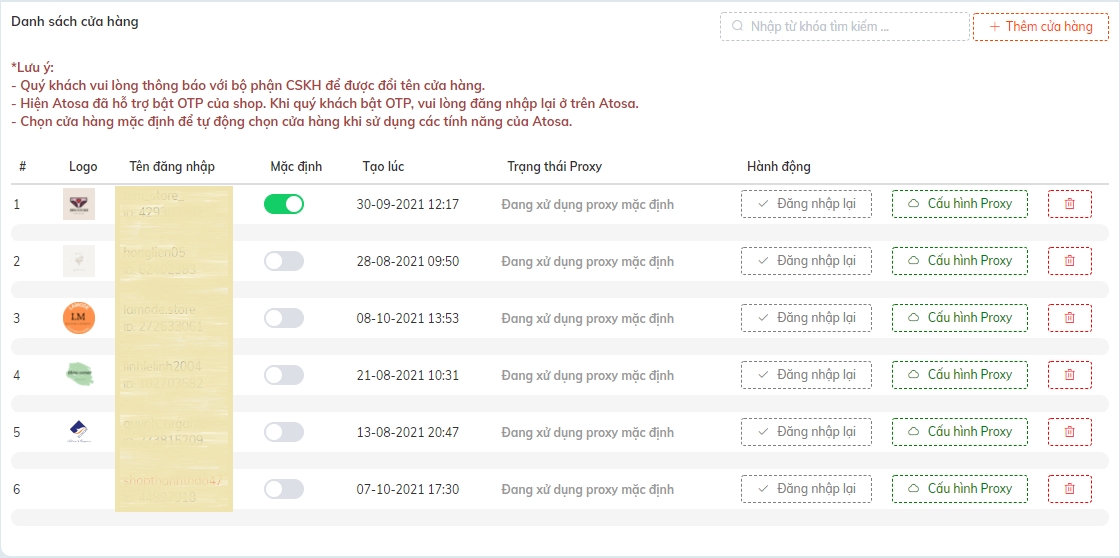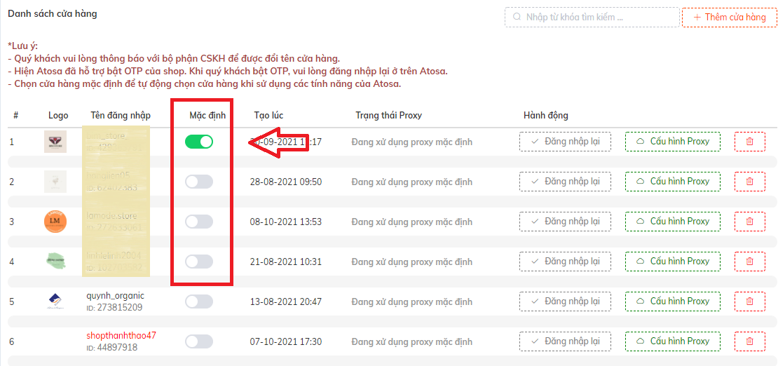 Thêm shop và quản lý shop để quảng cáo Atosa