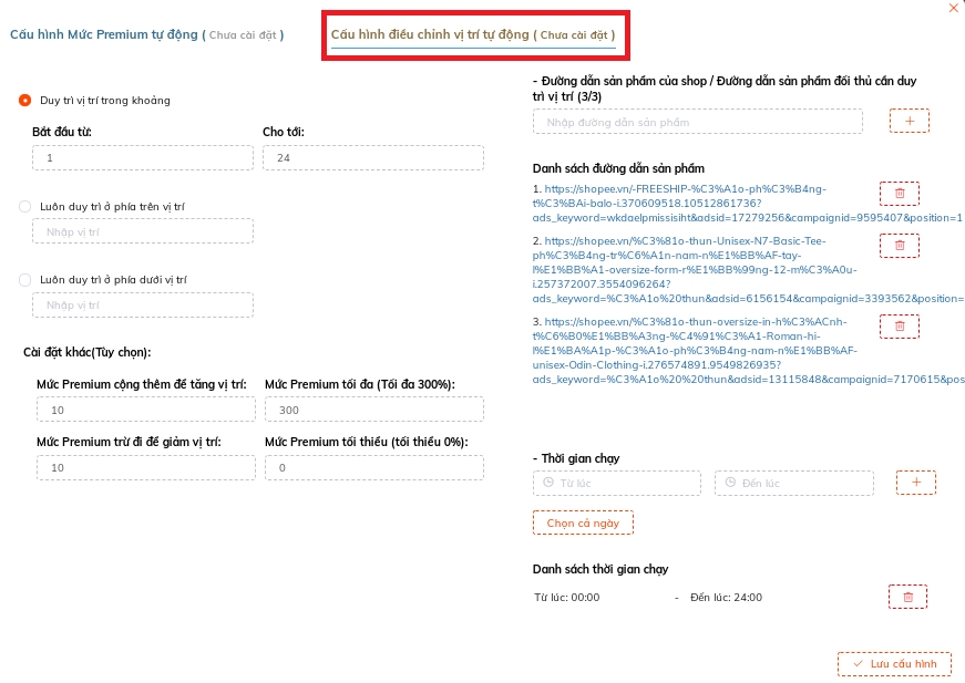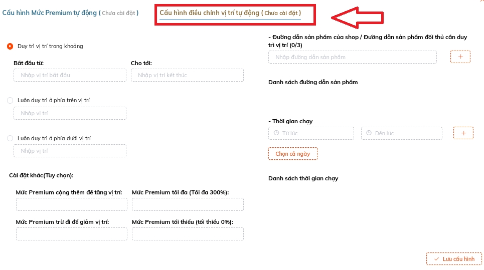 ✔ Mức premium cộng/trừ để tăng/giảm vị trí :