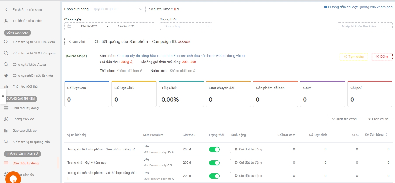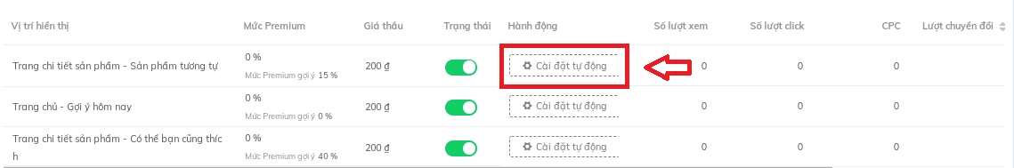 Sau khi đã chọn được chiến dịch muốn đeo bám đối thủ, Sốp nhấn vào nút quyền lực " Cài đặt tự động" ở đây ạ.