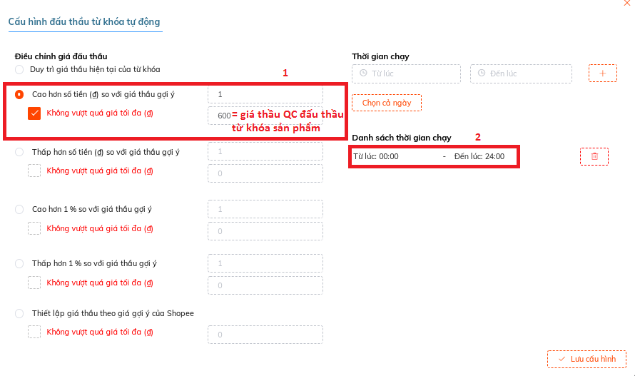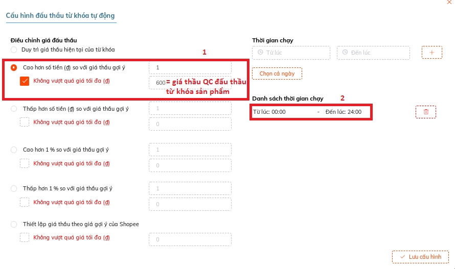 Cài đặt theo cấu hình trên giúp giá thầu của sốp lúc nào cũng cao hơn giá thầu gợi ý mà lại còn vô cùng tối ưu.