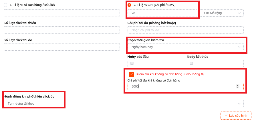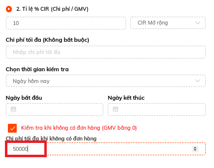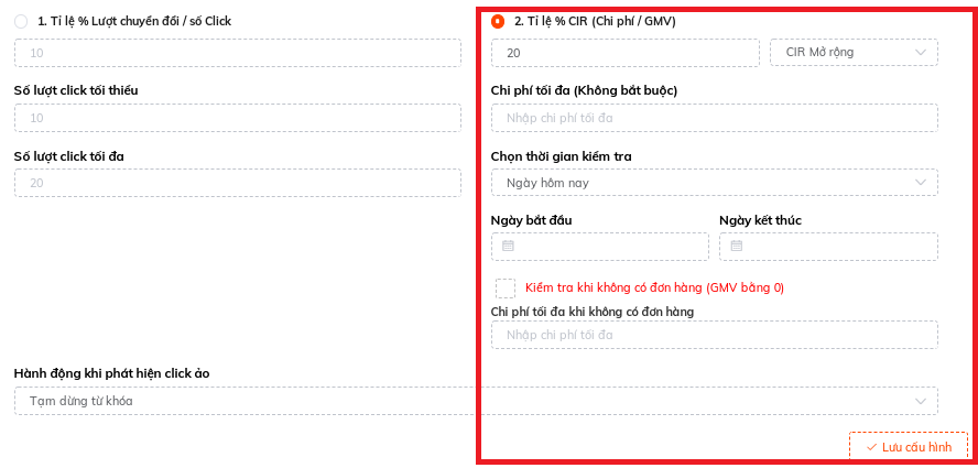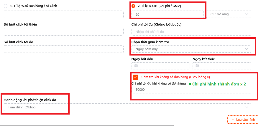 Tips: Sốp nên cài Tỷ lệ CIR max = Tỷ lệ lợi nhuận của sản phẩm khi quảng cáo. Tức tối đa chấp nhận hòa vốn của Quảng cáo. Đó là lý do Atosa khuyên sốp cài theo tỷ lệ lợi nhuận là vì vậy.