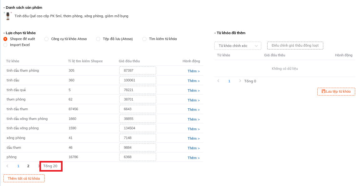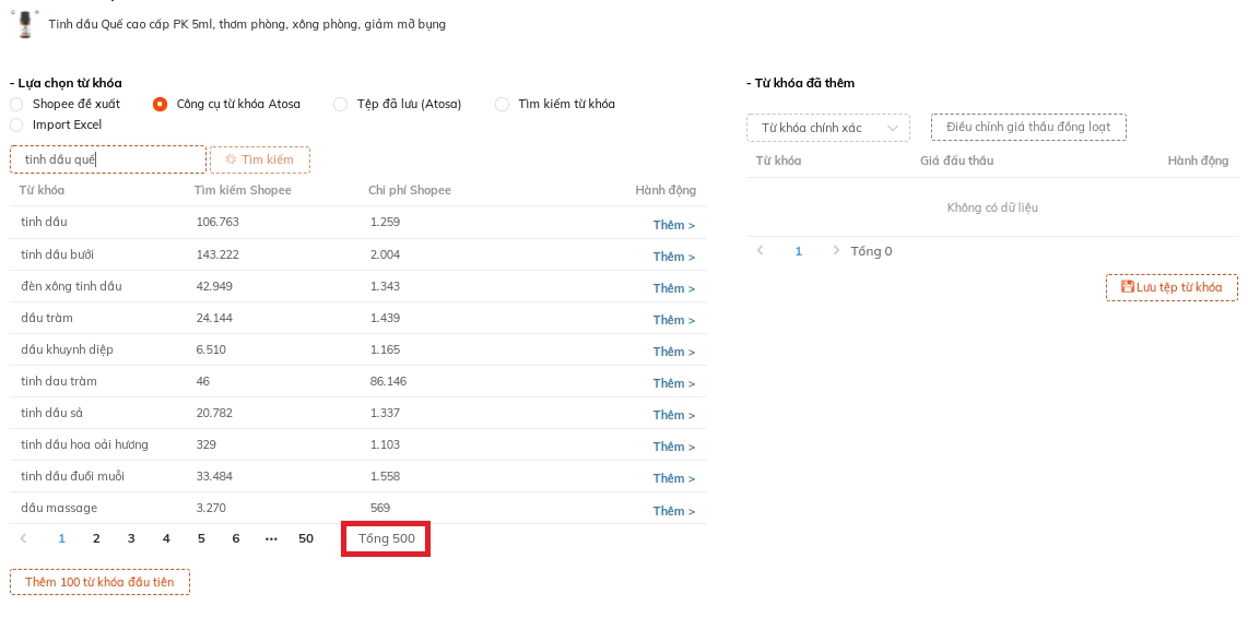 Sử dụng công cụ từ khóa Atosa mở rộng