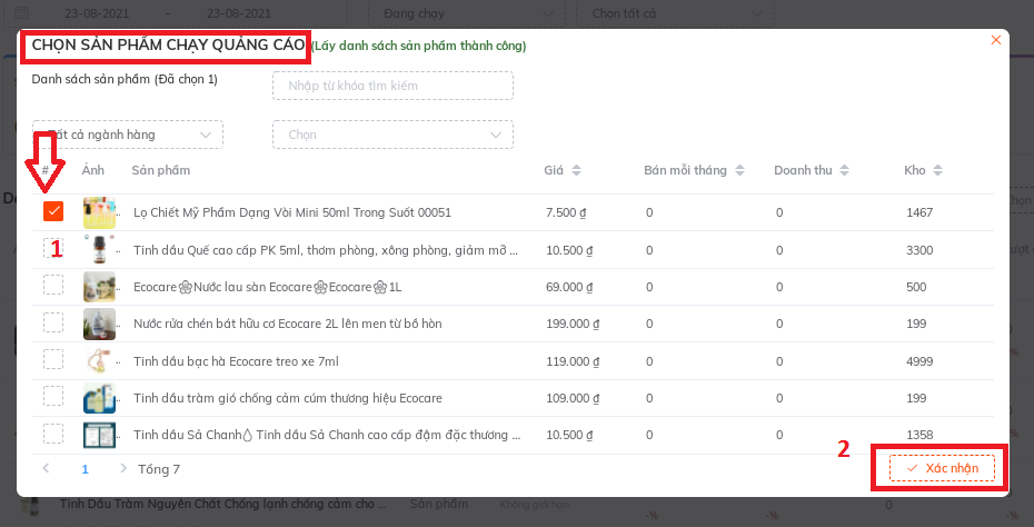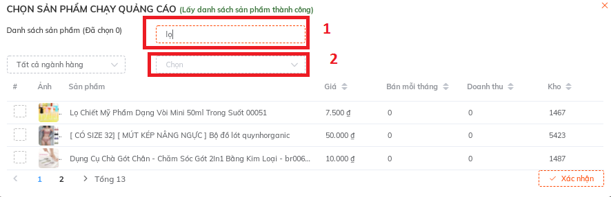 Bước tiếp theo, hãy ấn nút chọn sản phẩm để chạy quảng cáo nha Sốp