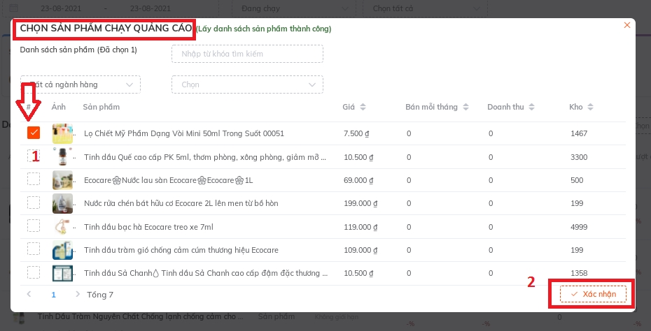 Chọn sản phẩm chạy quảng cáo