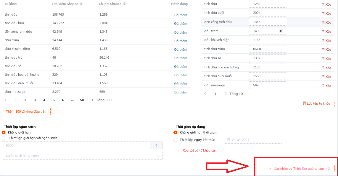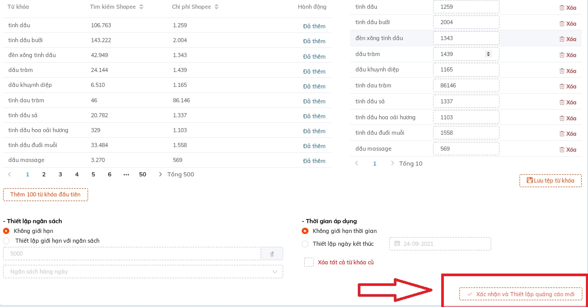 Nếu xác nhận tạo chiến dịch quảng cáo luôn thì hãy nhớ ấn nút "Xác nhận" như hình dưới đây nhé