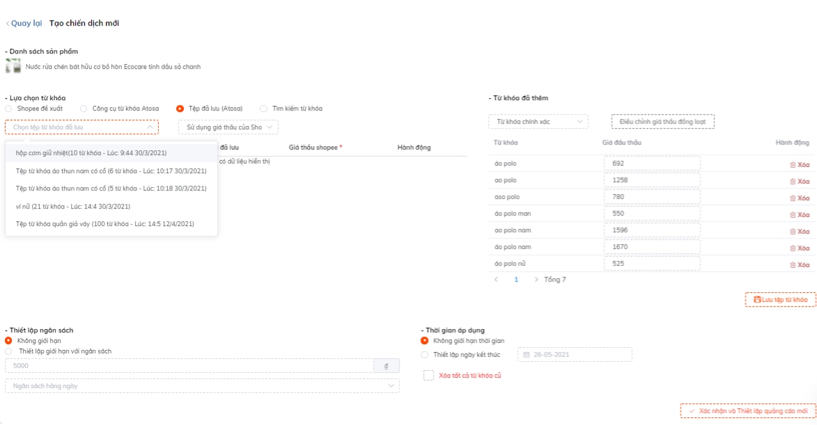 Tạo chiến dịch đấu thầu từ khóa và chỉnh ngân sách, thời gian cho chiến dịch, đào từ khóa áp dụng vào chiến dịch là những bước đầu tiên và rất quan trọng của Quảng cáo.