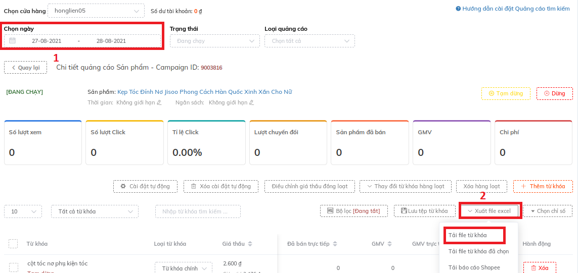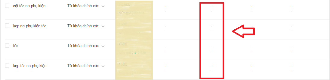 Trong trường hợp từ khóa đã bị mất hiển thị tức là không có lượt xem - nếu xem trên shopee các số liệu hiện thị dấu "-"này nè sốp.