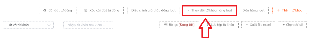 Bước 2 : Ấn " Thay đổi từ khóa hàng loạt" và click vào " Thay đổi trạng thái từ khóa"
